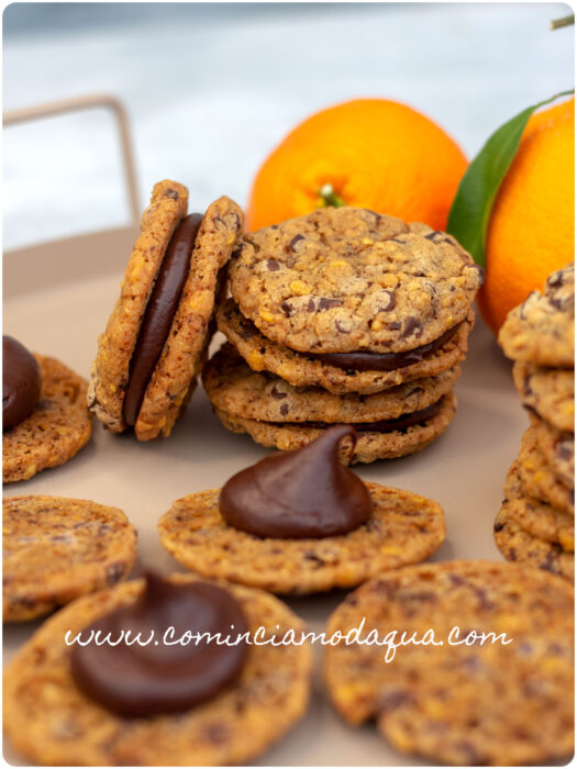 Ce li descrive come sofisticati e molto divertenti perché nell’impasto hanno i cornflakes, che danno la nota croccante, con gocce di cioccolato, ma hanno un’esplosione di sapore grazie a un vortice di ganache al cioccolato aromatizzata all’arancia se accoppiati a sandwich.