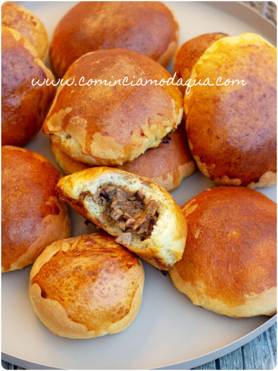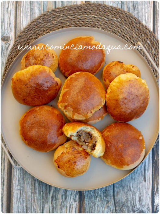 Non lasciatevi intimidire dall’impasto. È sorprendentemente facile da lavorare, perché non è appiccicoso e sigilla perfettamente il ripieno. Sebbene la ricetta preveda alcuni passaggi e richieda un po’ di pazienza, non è eccessivamente complicata o tecnicamente impegnativa. Inoltre, ne vale assolutamente la pena: addentare un panino appena sfornato e fumante è una vera delizia!